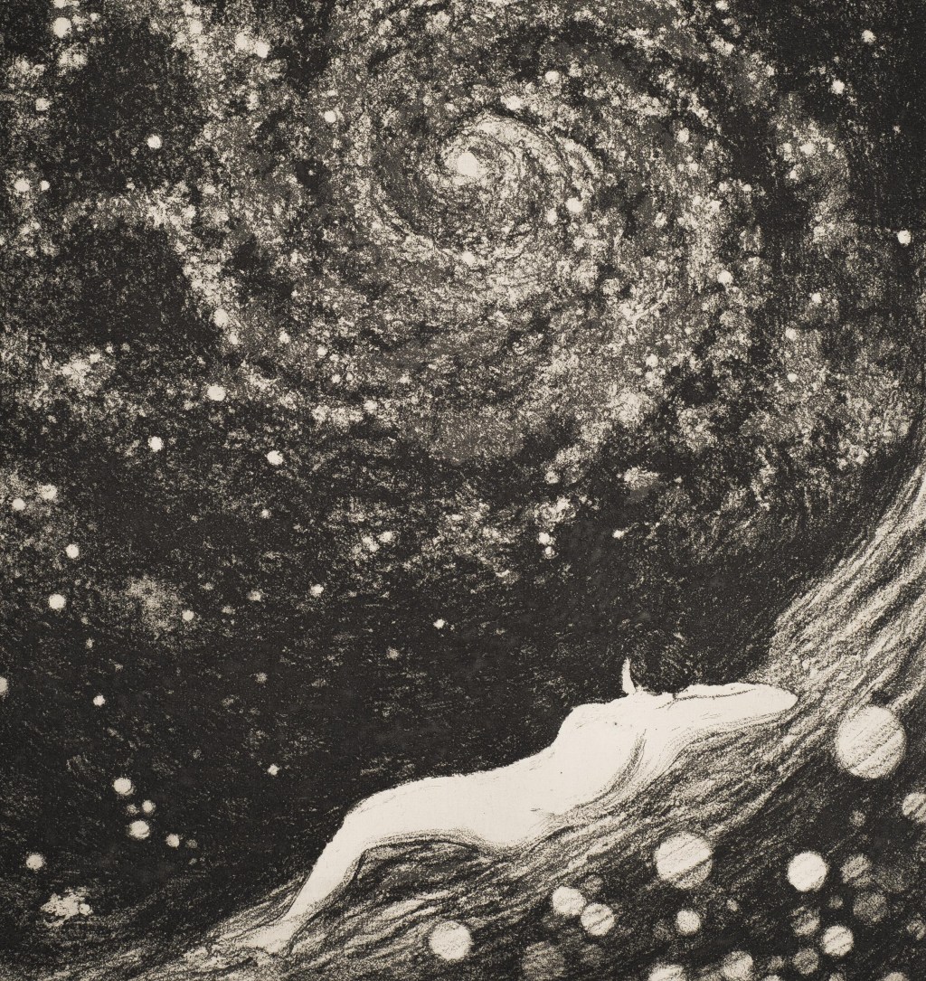 black and white starry night