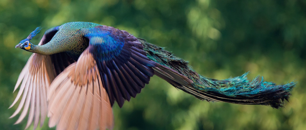 The peacock flew out of sight