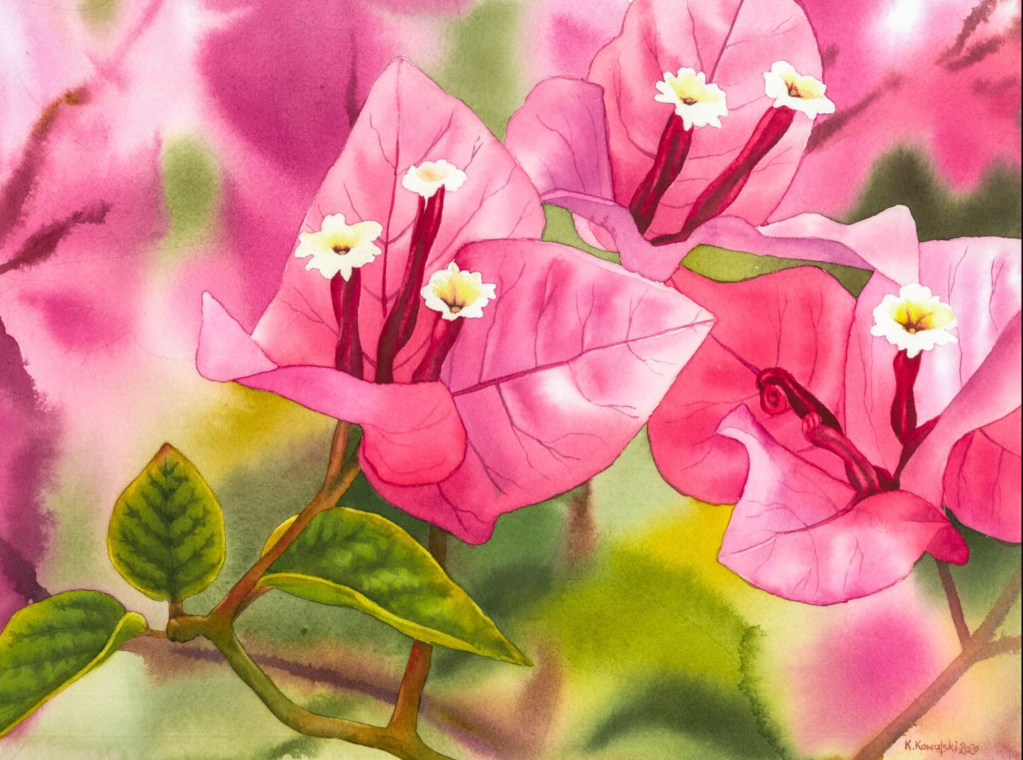 Painting by K Kovuluski. Style inspired by Emily Dickinson’s love for flowers.